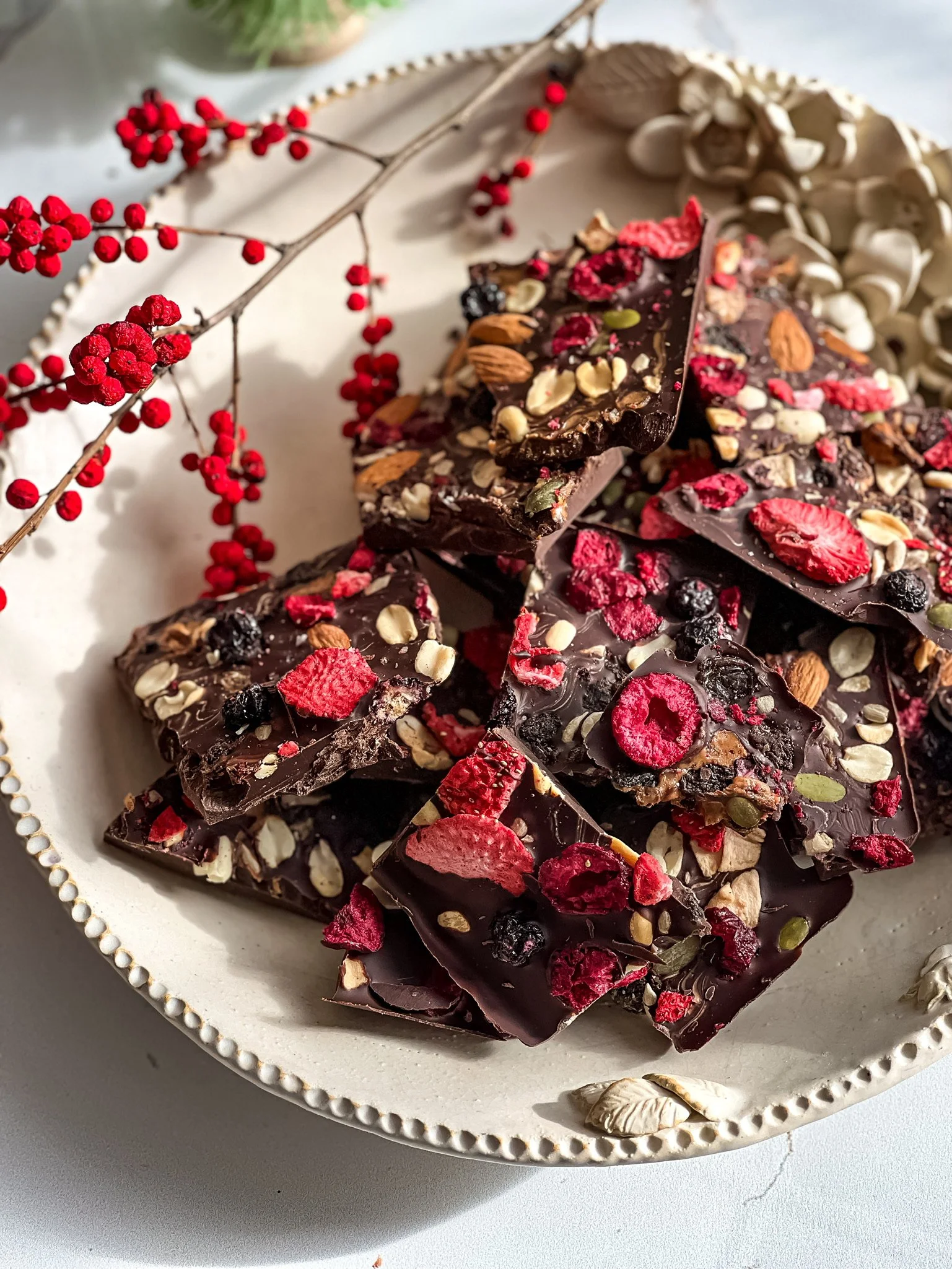 If you’re looking for a last-minute holiday recipe to bring to a party, I’ve got you covered! This chocolate bark is so easy to make and I bet you already have these ingredients in your pantry.